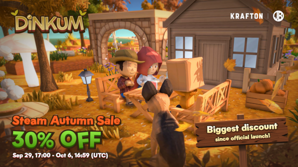 KRAFTON, Inc. today announced that its survival life sim Dinkum will be available in the Steam Autumn Sale at 30% off — the game’s largest discount since launch. The promotion runs Sept 29 at 10 AM PT / 5 PM UTC through Oct 6 at 10 AM PT / 5 PM UTC.