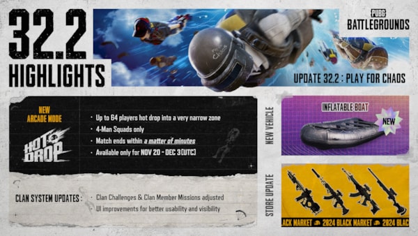 KRAFTON, Inc. has rolled out PUBG: BATTLEGROUNDS Update 32.2, adding exciting gameplay updates that bring players a new vehicle, an action-packed Arcade mode, and fresh crafting rewards. With these new features, players can expect faster, more intense matches across the Battlegrounds. Full patch notes and detailed information can be found here.