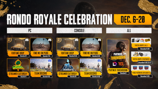 Weitere Informationen über RONDO gibt es auf https://pubg.com/rondo. Die neuesten Informationen zu PUBG: BATTLEGROUNDS sind auf https://pubg.com/en-eu oder den sozialen Medien (Twitter/Instagram/Facebook/TikTok) zu finden.