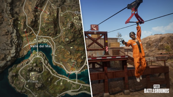 - Zipline (Halat): Oyuncular artık Miramar'ı yeni halat özelliği sayesinde daha kolay bir şekilde gezinebilirler. Her halatta iki ip bulunur, bu sayede birden fazla oyuncu aynı anda halatı kullanarak zorlu arazileri geçebilir ve hızlı ve gizli bir şekilde düşman tarafından korunan alanları aşabilir. Halat, savaş dinamiklerine heyecan katan bir katman ekler ve akıcı hareket etmeyi kolaylaştırır.